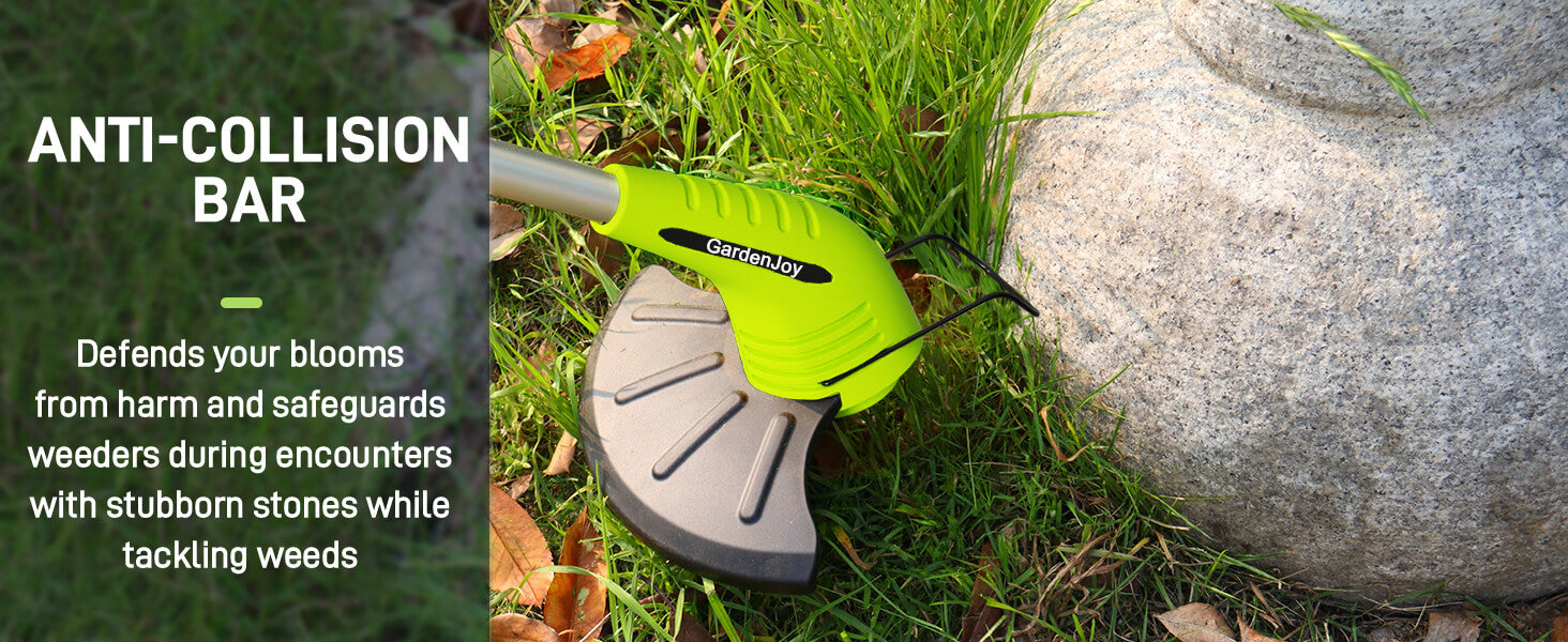 - 【Easy to use】Compared with other grass trimmers, our electric weed wacker is light in weight, only 3.72 lbs, making it easier to carry. It functions much quieter than traditional gas-powered grass trimmer resulting in happy neighbors. The weed trimmer is easy to operate and can be assembled and operated alone, making your gardening work more pleasurable.