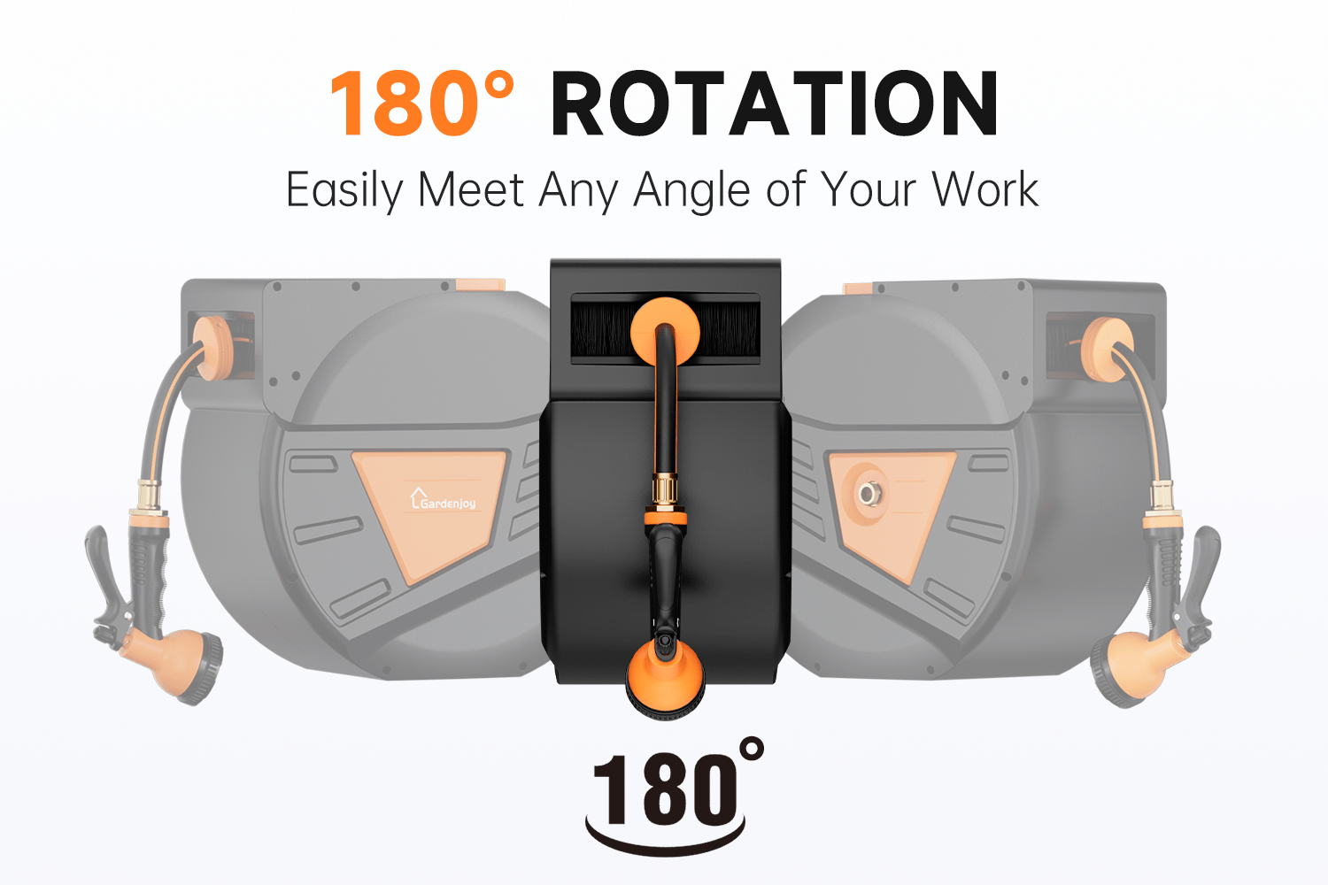 - 180° Swivel: Our Retractable Garden Hose Reel features a revolutionary 180-degree swivel for effortless movement, allowing you to easily navigate obstacles while watering.