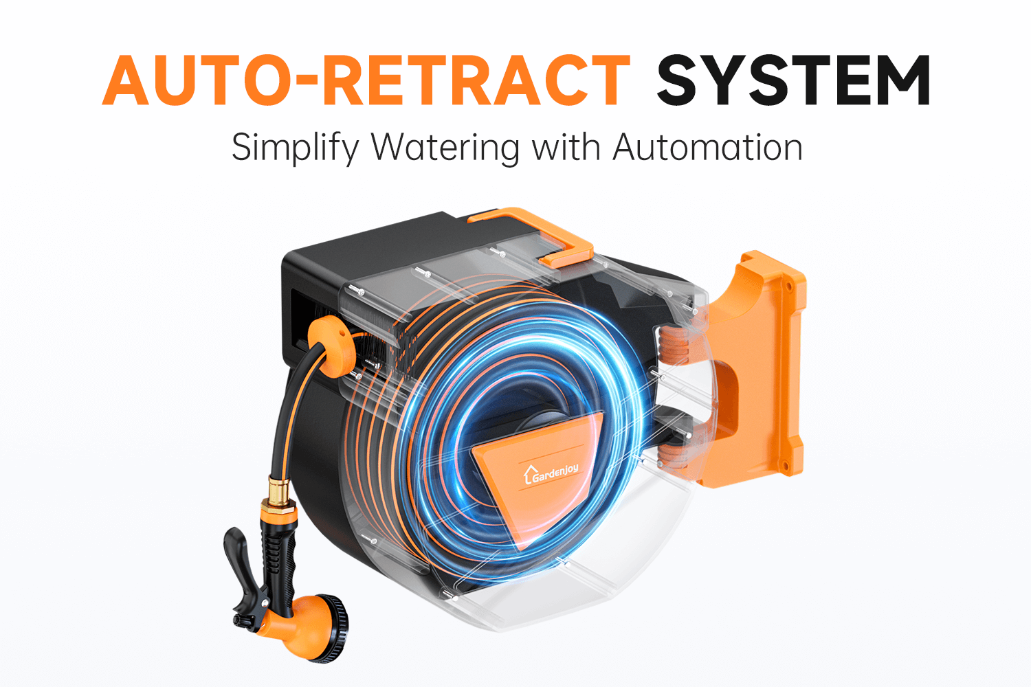 - Innovative Retraction System: Experience the ultimate convenience with our advanced automatic retraction system. Powered by a precision-engineered spring mechanism, the hose smoothly retracts with a gentle tug, keeping your garden tidy effortlessly.