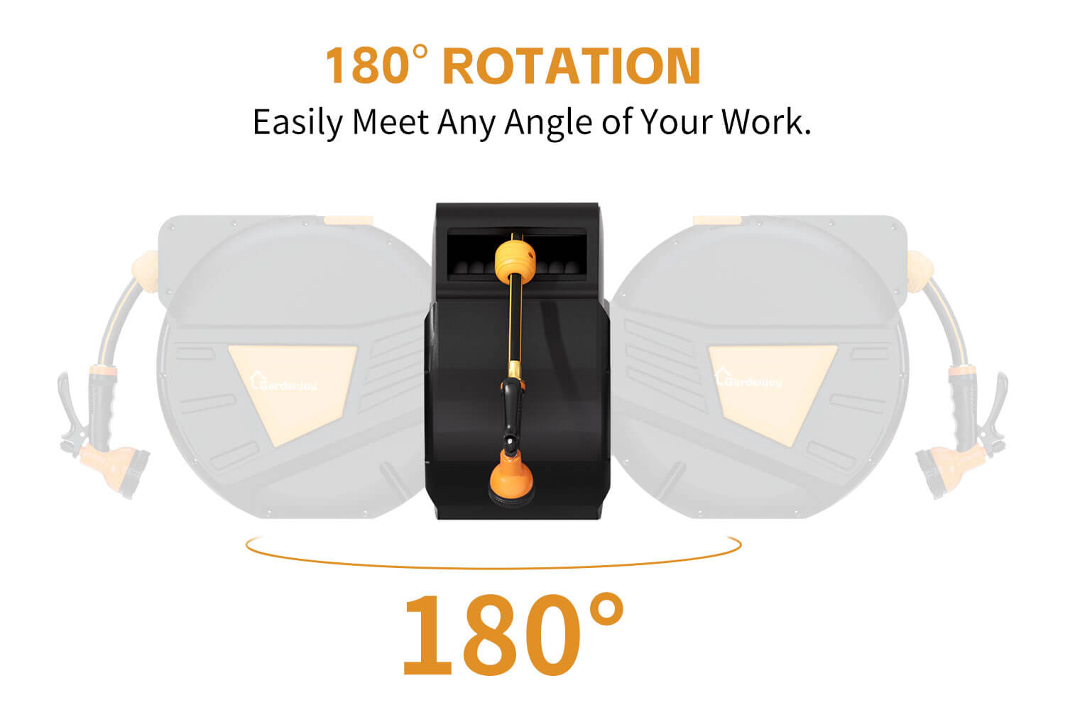 The powerful 180° rotational feature allows the hose reel to flexibly adapt to various usage scenarios, making your operation smoother and work more efficient.