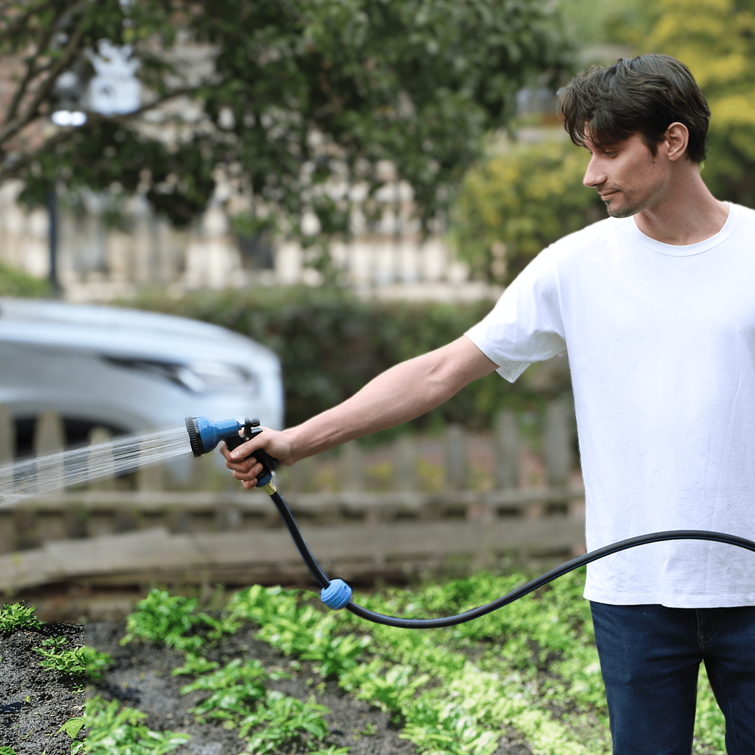 GardenJoy Blue automatic rewind hose, one-touch lock for any length, special leak-proof design, with 10-mode nozzle + 180° rotating bracket