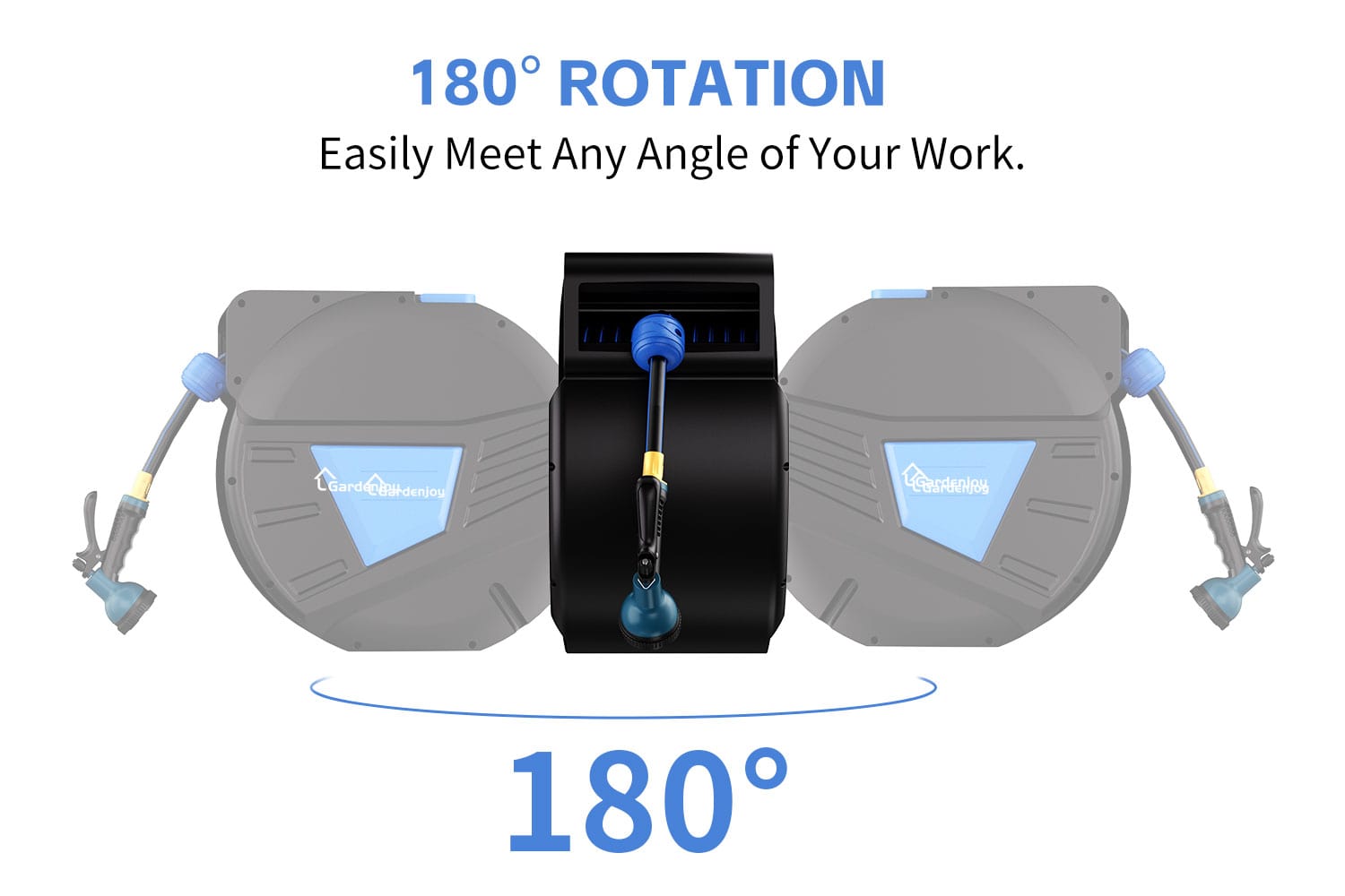 - 180° Swivel: Our Retractable Garden Hose Reel features a revolutionary 180-degree swivel for effortless movement, allowing you to easily navigate obstacles while watering.