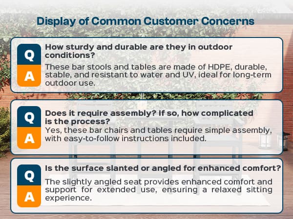 - Fast & Reliable Support: Backed by a 1-year warranty and responsive service. We promise to respond within 12 hours to any inquiries, ensuring a worry-free experience for your outdoor bar table and chairs set.