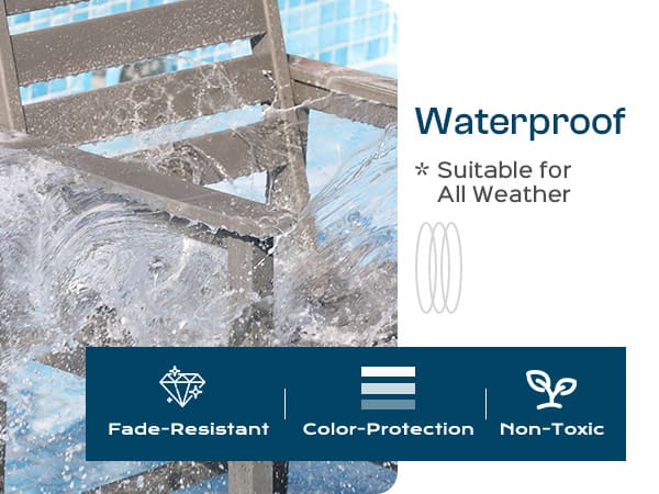 - Hassle-Free Assembly & Maintenance: Quick assembly with clear instructions and included hardware. The waterproof, fade-resistant surface ensures this patio furniture set requires minimal maintenance—just wipe it with soap and water to keep it looking new.